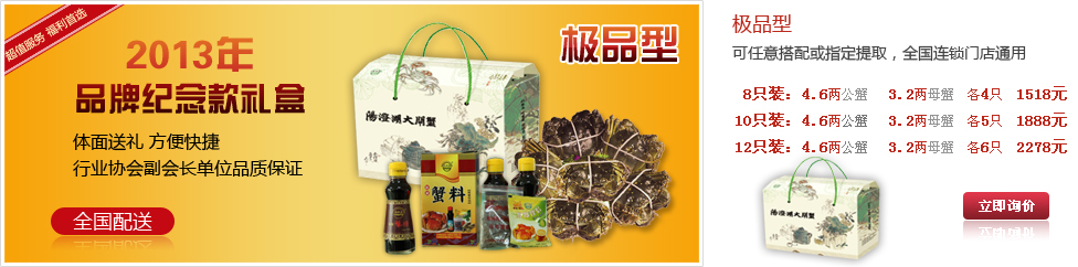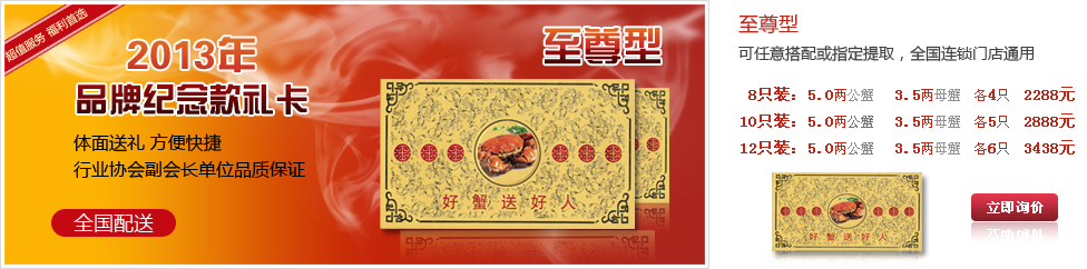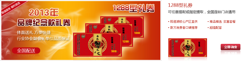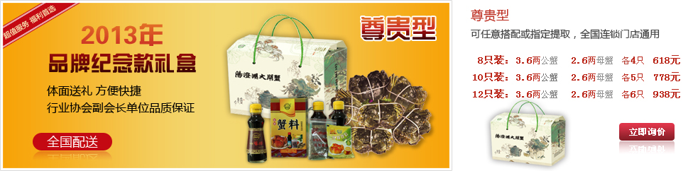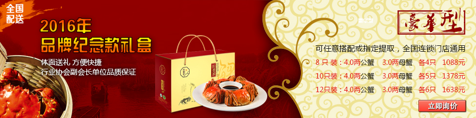 本報與陽澄湖大閘蟹行業(yè)協(xié)會副會長西安直營店  聯(lián)手奉獻正宗陽澄湖大閘蟹  目前,三陽公司繼續(xù)推出好禮物送給最重要的人優(yōu)惠活動,凡消費者購買陽湖島陽澄湖大閘蟹禮券(388元、688元、988元、1288元、1888元...